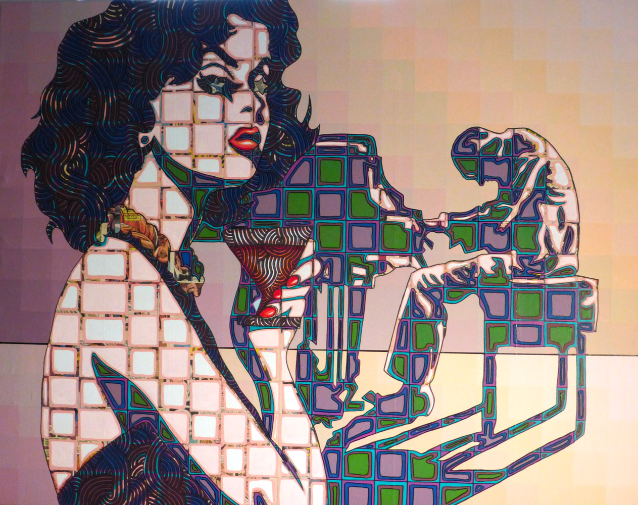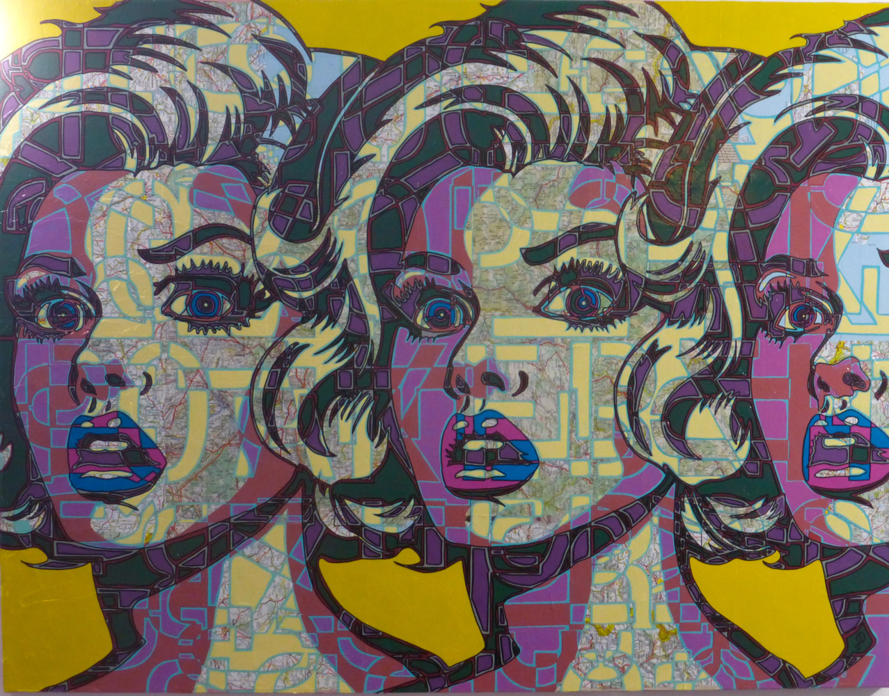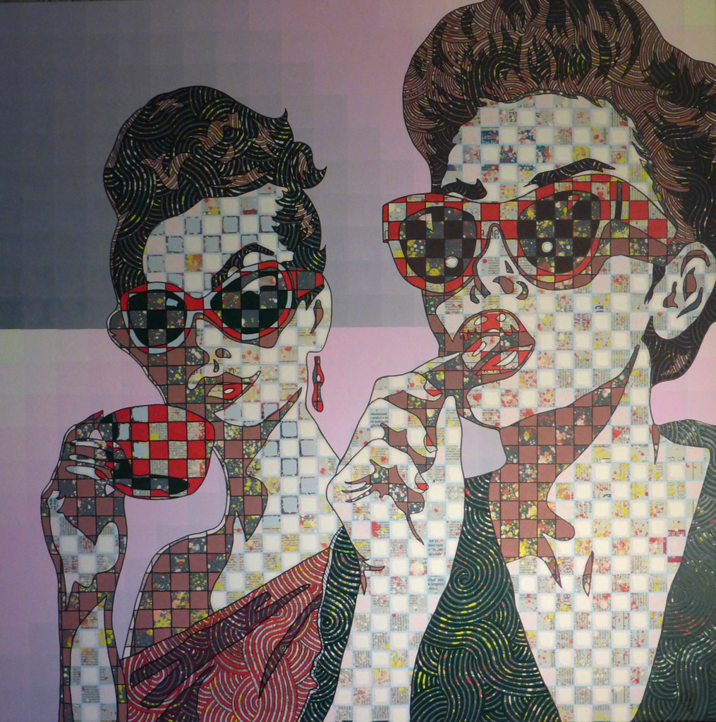 Ses nouvelles toiles, aux couleurs intenses et aux compositions dynamiques, s’inspirent du cinéma, de la publicité et des grands événements de notre époque.